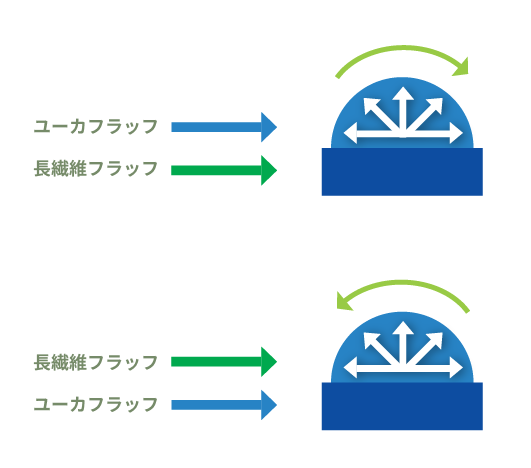 常にミルの刃がユーカフラッフに最後にあたるようにしなければなりません。軸の回転方向に注意してください。時計方向の回転の場合、ユーカフラッフシートは長繊維シートの上に置く必要があります。反時計方向の回転の場合、ユーカフラッフシートは長繊維シートの下に置く必要があります。